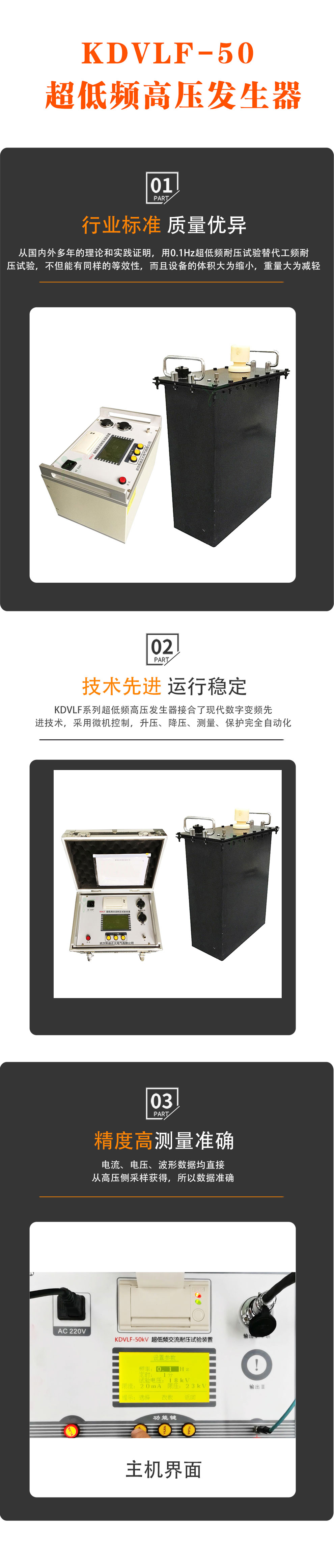 1、額定電壓小于或等于80kV的超低頻采用單聯(lián)結構(一臺升壓器);大于80kV的超低頻采用串聯(lián)結構(兩臺升壓器串聯(lián)),使整體重量大大減輕,帶載能力增強,而且兩臺升壓器可單獨作低電壓等級的超低頻使用。