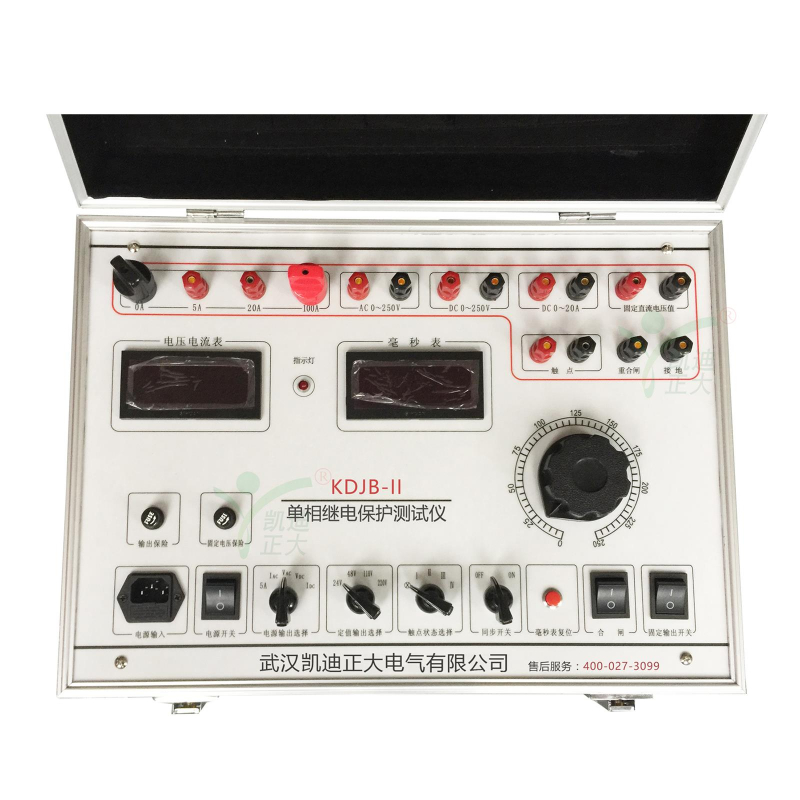 KDJB-II 單相繼電保護(hù)測試儀是我公司在原KDJB的基礎(chǔ)上開發(fā)成功的新一代校驗(yàn)裝置。該儀器內(nèi)部的交直流電壓、電流源采用了最新的電源技術(shù),使儀器在電路設(shè)計(jì)、器件選型、面板布局、內(nèi)部結(jié)構(gòu)設(shè)計(jì)上達(dá)到國內(nèi)先進(jìn)水平。該儀器具有功能完善、選材優(yōu)良、測試項(xiàng)目數(shù)據(jù)清晰、操作簡單等優(yōu)點(diǎn),是電力繼保部門的首選設(shè)備。