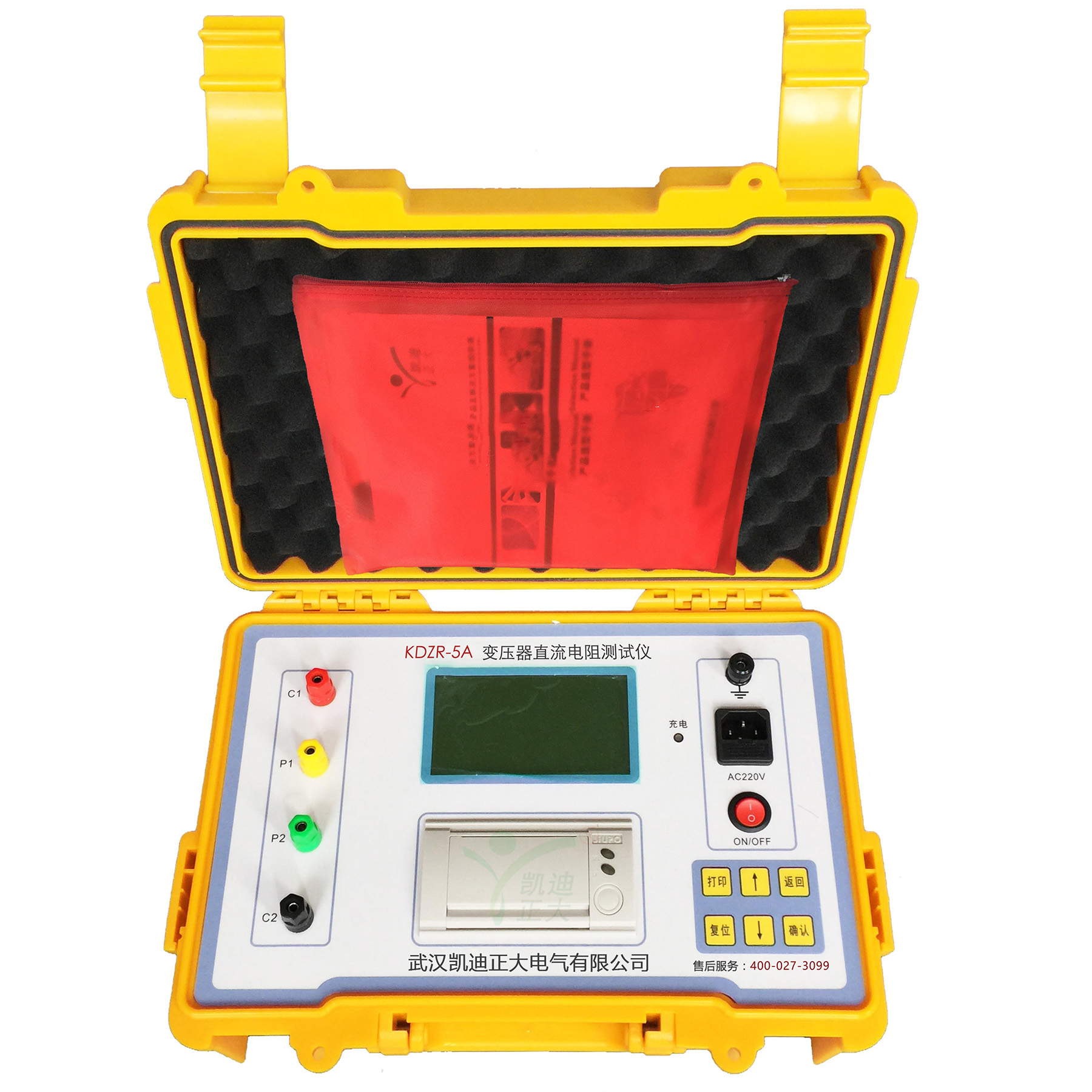 KDZR-5A 變壓器直流電阻測試儀界面設(shè)計采用微機控制,大屏幕背光漢字液晶屏顯示,操作簡便、顯示清晰人機交互界面友好,測量過程及儀器工作狀態(tài)提示明確充分,不需操作人員記憶過多的規(guī)程;采用電流源線性補償技術(shù),測試穩(wěn)定、測量精度高、速度快,提高了測量效率,減輕了操作人員的工作強度。技術(shù)上采用“四端”測量,消除引線電阻與接觸引起的測量誤差。有過壓防護功能,能防反電動勢沖擊。面板式打印機可快速打印測量結(jié)果(選用)。體積小、重量輕、攜帶方便。
