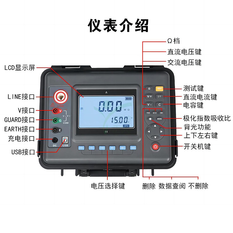 :0.01MΩ~50TΩ 精度:±3%rdg±5dgt 分辨率0.01MΩ