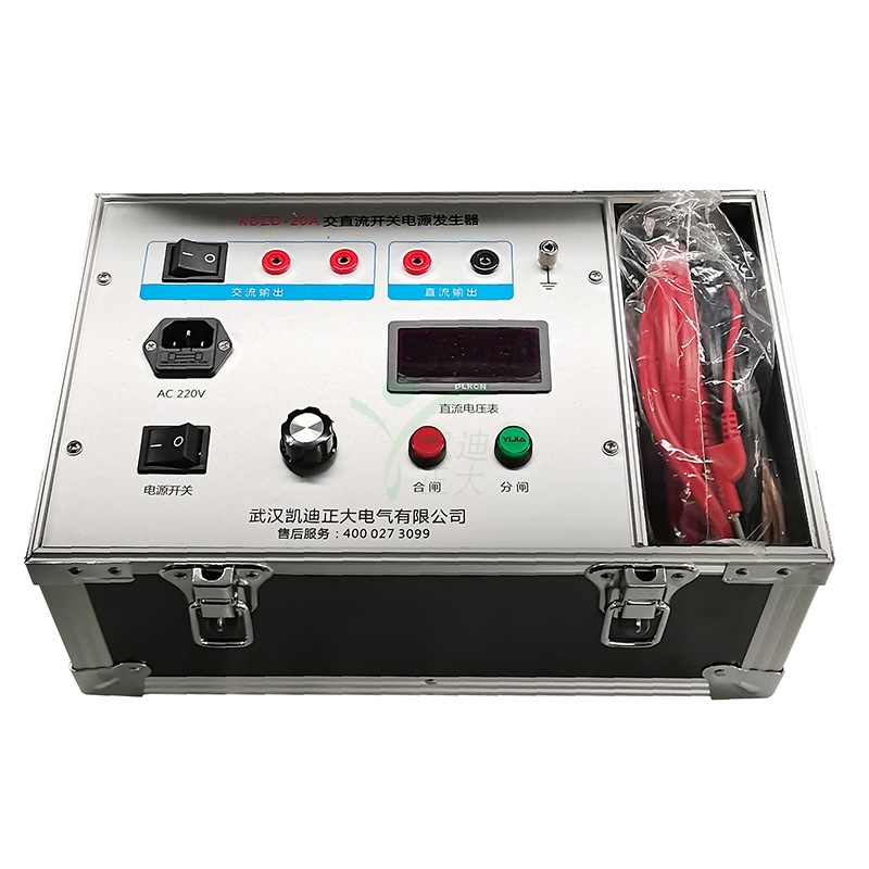 KDZD-20A 交直流開關(guān)電源發(fā)生器亦稱高壓開關(guān)檢測操作電源,是為對高壓斷路器及其操作機構(gòu)進行檢測維修而設(shè)計的專用電源,具有電壓可調(diào)、操作簡單、體積小、攜帶方便等優(yōu)點,是高壓開關(guān)檢修不可缺少的檢測工具。