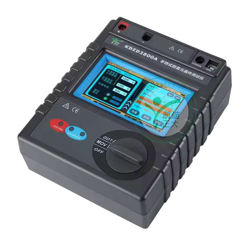 KDZD3800A 手持式防雷元器件測(cè)試儀用于測(cè)量各種壓敏電阻(MOV)和氣體放電管(GDT) 性能參數(shù)測(cè)試,儀表具有高壓短路保護(hù)、過流保護(hù)功能,具有參數(shù)設(shè)置功能、高壓 限值設(shè)定、升壓速度設(shè)定、合格范圍設(shè)定、合格判斷篩選、自動(dòng)量程調(diào)節(jié)等功能。還具有單件測(cè)試模式、連續(xù)測(cè)試模式功能,適合批量元件測(cè)試。其中KDZD3800A還具有絕緣電阻、吸收比、極化指數(shù)測(cè)試功能。