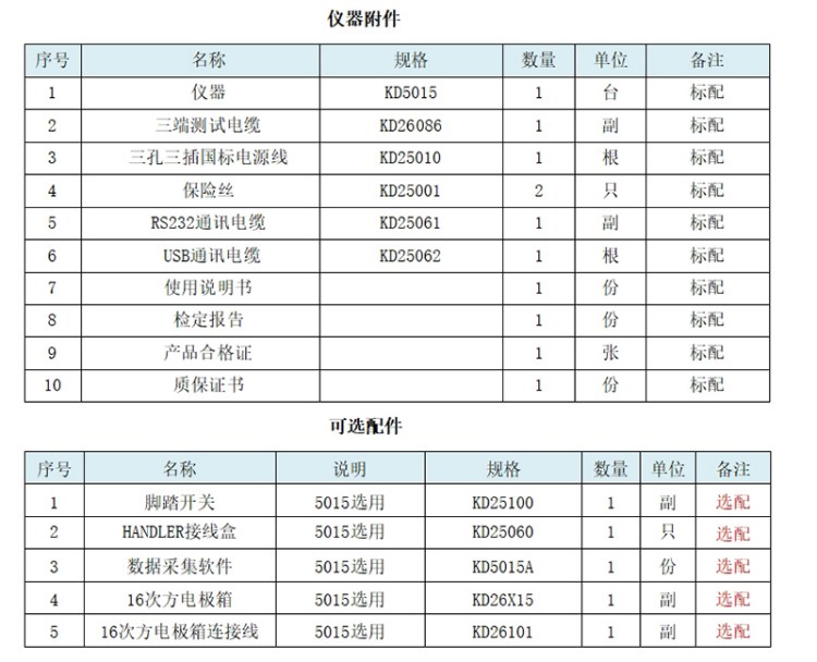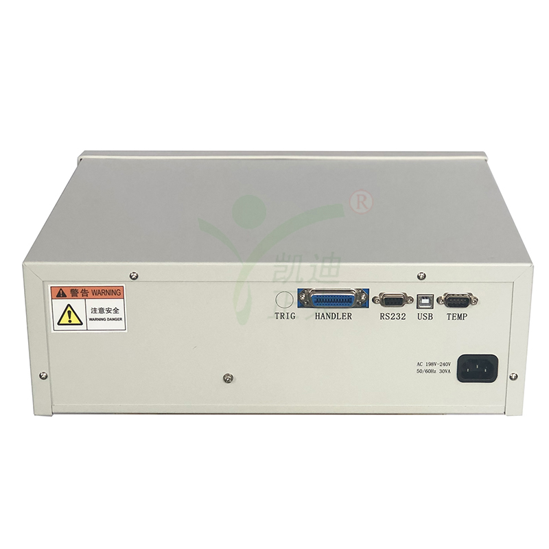 10、隨機(jī)附件:使用說明書、測試報告、質(zhì)保證書、保修卡、裝箱單、儀器、電源線、保險絲、三端開爾文測試夾、RS232通訊電纜、USB通訊、電纜腳踏開關(guān)(選配))