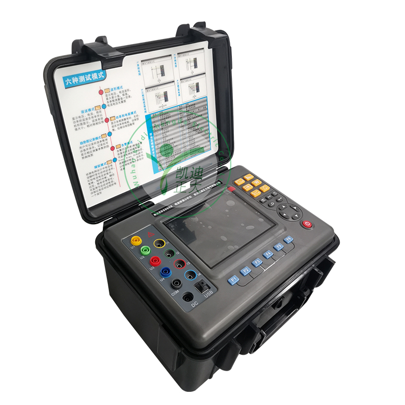 KDZD5000Z電能質(zhì)量分析儀是我公司研制的一款專為現(xiàn)場測試的三相、多功能、智能化、人機(jī)操作簡潔的綜合型測試儀器。具有容易使用,大液晶彩屏顯示,高分辨率,中英文雙語操作界面,箱式結(jié)構(gòu)外殼等特點(diǎn)??赏瑫r(shí)測量4路電流(ABC三相及中性線電流),4路電壓(ABC三相電壓及中性線對地電壓)、電流電壓的峰值、一段時(shí)間內(nèi)的最大最小值、三相不平衡度、短時(shí)電壓閃變、變壓器K因數(shù)、有功功率、無功功率、視在功率、功率因數(shù)、位移功率因數(shù)、有功電能、無功電能、視在電能、諧波比、總諧波失真度等;顯示電流電壓的實(shí)時(shí)波形、相量圖、諧波比柱形圖;動(dòng)態(tài)捕捉電壓電流瞬時(shí)變化,監(jiān)測啟動(dòng)電流,監(jiān)測各電力參數(shù)并生成告警列表,長時(shí)間記錄測試數(shù)據(jù)并生成趨勢曲線圖等功能。
