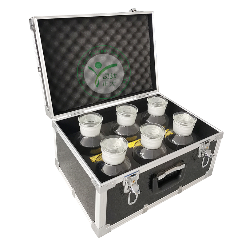 箱子結(jié)構(gòu):箱子外部為鋁合金結(jié)構(gòu),內(nèi)部放硬泡沫和軟海綿結(jié)構(gòu),較厚層五夾板襯體。四周不銹鋼包角,周邊包條加固,箱內(nèi)加厚海綿使針筒油杯格式化固定對號入座,使現(xiàn)場途中均能防碰、防震。內(nèi)裝置注射器,廣口瓶等,攜帶方便,防振耐用。