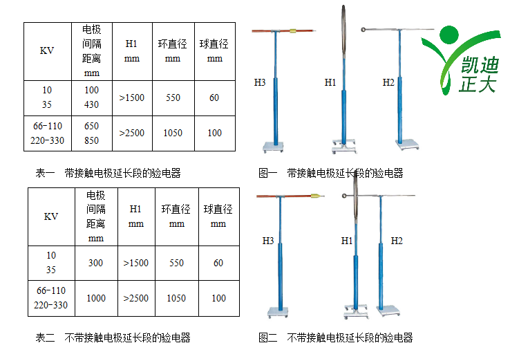 H2為多節(jié)伸縮絕緣管,頂部分別(可換)直徑Ø60mm、100mm金屬球,在分別用于10KV,35KV及66—110KV,220—330KV(見表一,二規(guī)定)。