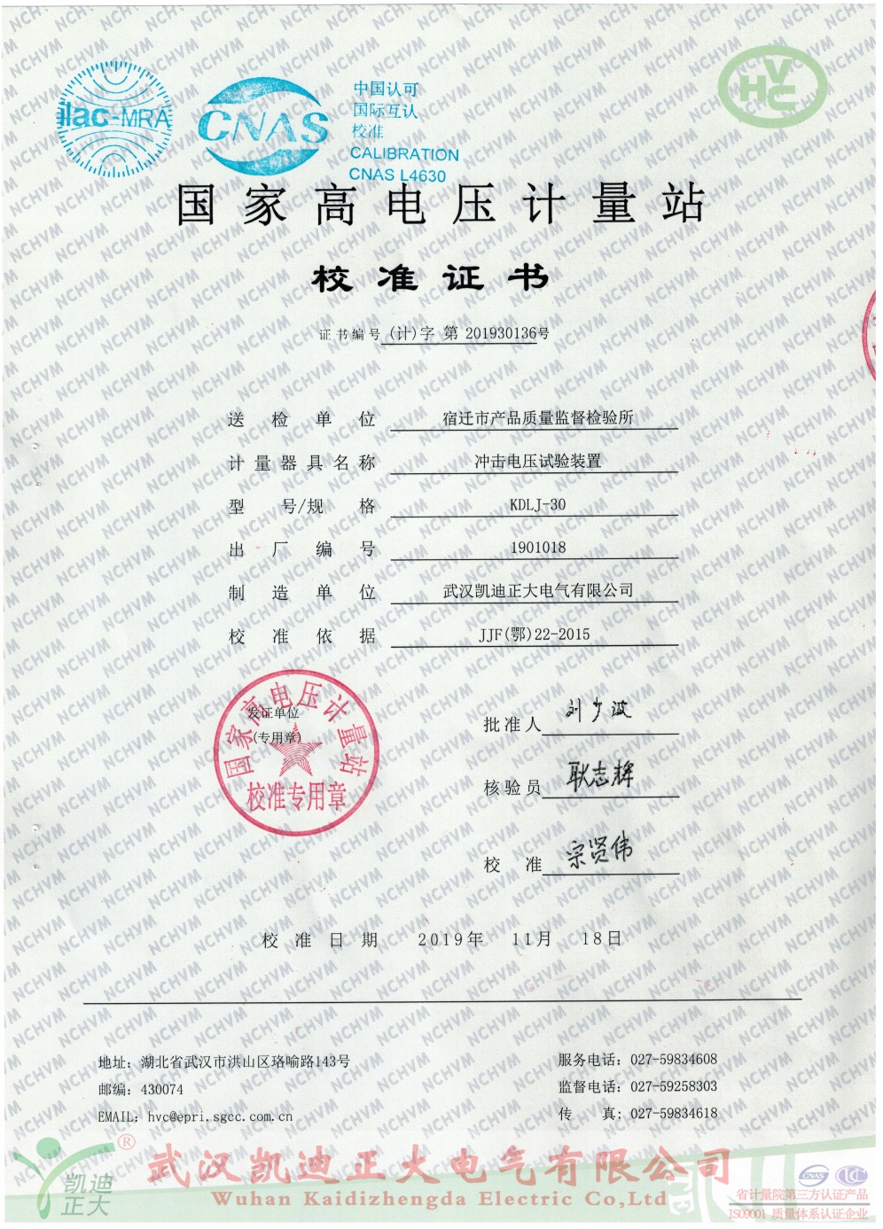 武漢市計(jì)量測(cè)試檢定(研究)所對(duì)宿遷市產(chǎn)品質(zhì)量監(jiān)督檢驗(yàn)所采購(gòu)的產(chǎn)品作檢定效驗(yàn)報(bào)告。