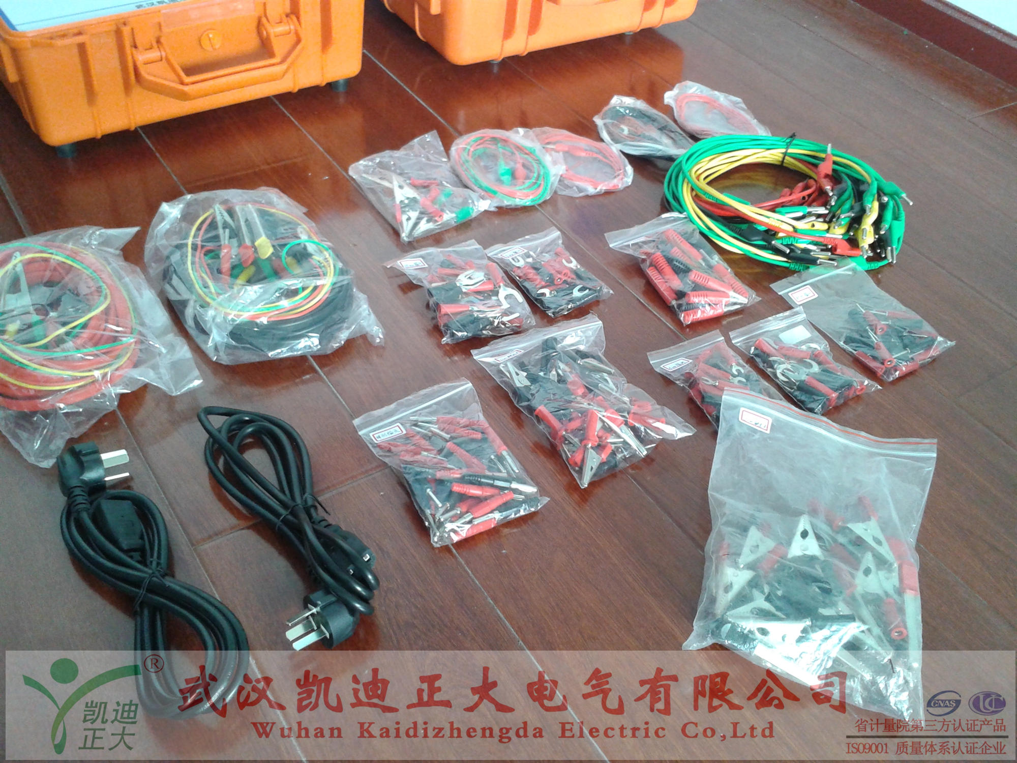 其中有KDZD3000三相多功能相位儀,要求全配;電流夾鉗4只,生產(chǎn)廠家:武漢凱迪正大電氣有限公司。KDZD-2測試導線套裝,要求:包括:電流線8根,電壓線8根,普通連接線5根,5mm夾4只,10mm夾8只,20mm夾4只,4mm插片4只,6mm插片4只,8mm插片4只,針形插頭4只,過渡接柱4只,測試筆2支。電壓、電流導線2米。生產(chǎn)廠家:武漢凱迪正大電氣有限公司。