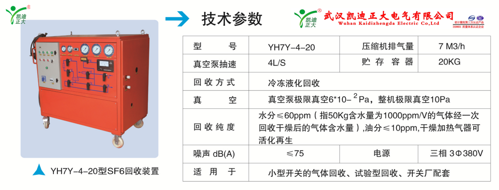 35kV及以下開關(guān)成套設(shè)備廠建議用KDQH-7Y-4-20型,壓縮機排量在7M3/h,抽氣速率4L/S采用冷凍液化回收。