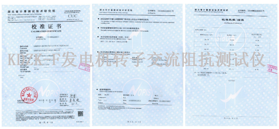 凱迪正大發(fā)電機(jī)轉(zhuǎn)子交流阻抗測試儀取得專業(yè)校準(zhǔn)證書