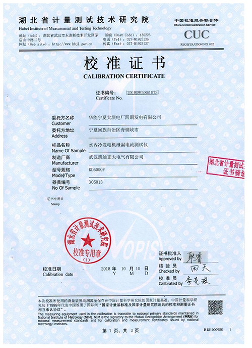 通過《直流數(shù)字電流表試行檢定規(guī)程》(JJG 598-1989)《泄漏電流測量儀(表)檢定規(guī)程》(JJG 843-1993),武漢凱迪正大電氣有限公司生產(chǎn)的水內冷發(fā)電機泄漏電流測試儀:輸出電壓:80KV輸出電流:300mA輸出功率:24KW符合國家電力試驗標準,精度符合國家能源局發(fā)電機水內冷耐壓試驗需求。
