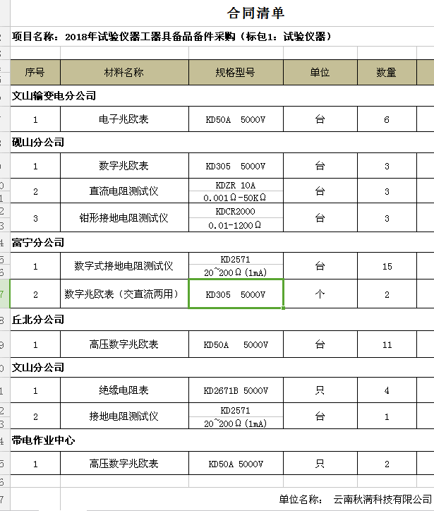 隨即,云南文山電力股份有限公司在我司生產(chǎn)的KD50A電子兆歐表,KD305數(shù)字兆歐表,KDZR-10A直流電阻測(cè)試儀,KDCR2000鉗形接地電阻測(cè)試儀,KD2671絕緣搖表,KD2571接地電阻測(cè)試儀等設(shè)備參數(shù)中看中優(yōu)于同行業(yè)電氣廠家的性能,價(jià)格優(yōu)勢(shì)、售后服務(wù)、良好的市場(chǎng)口碑判定中標(biāo)人云南秋滿公司。