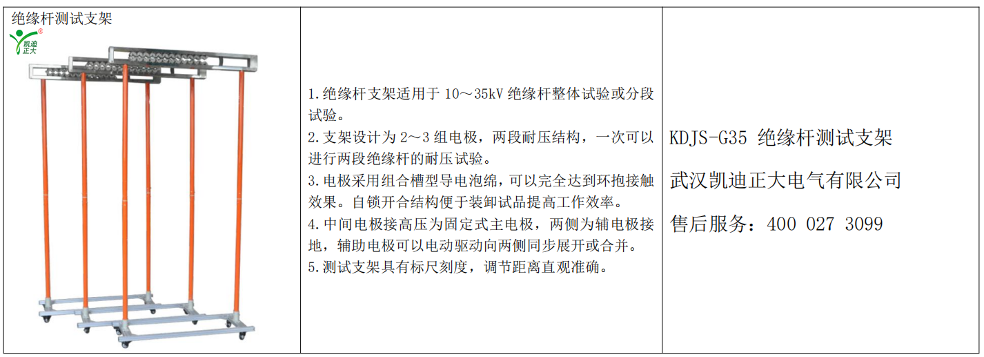 絕緣桿支架適用于10~35kV絕緣桿整體試驗(yàn)或分段試驗(yàn)。支架設(shè)計(jì)為2~3組電極,兩段耐壓結(jié)構(gòu),一次可以進(jìn)行兩段絕緣桿的耐壓試驗(yàn)。電極采用組合槽型導(dǎo)電泡綿,可以幾乎達(dá)到環(huán)抱接觸效果。自鎖開合結(jié)構(gòu)便于裝卸試品提高工作效率。中間電極接高壓為固定式主電極,兩側(cè)為輔電極接地,輔助電極可以電動(dòng)驅(qū)動(dòng)向兩側(cè)同步展開或合并。測試支架具有標(biāo)尺刻度,調(diào)節(jié)距離直觀準(zhǔn)確。