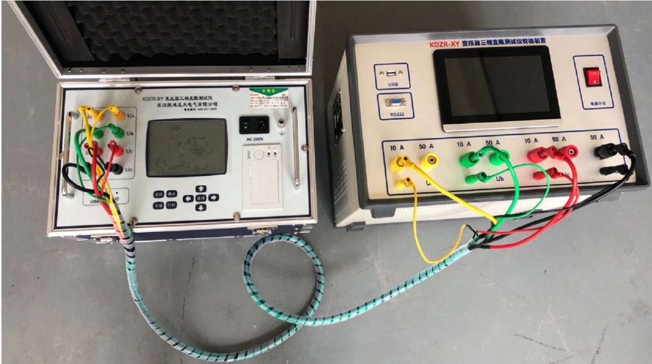 按照以上方法設(shè)置好ABC三相電阻值,等待10秒以上,便可開始對直阻測試儀進行校驗。