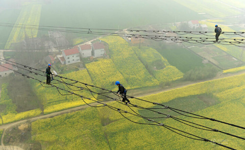 此次停電檢修從3月12日起,為期10天,參與檢修的輸電線路區(qū)段長134公里,有338座桿塔,是華中電網(wǎng)系統(tǒng)的骨干組成部分,承擔(dān)著南北電力互供的負(fù)荷分流重任。新華社記者郝同前攝