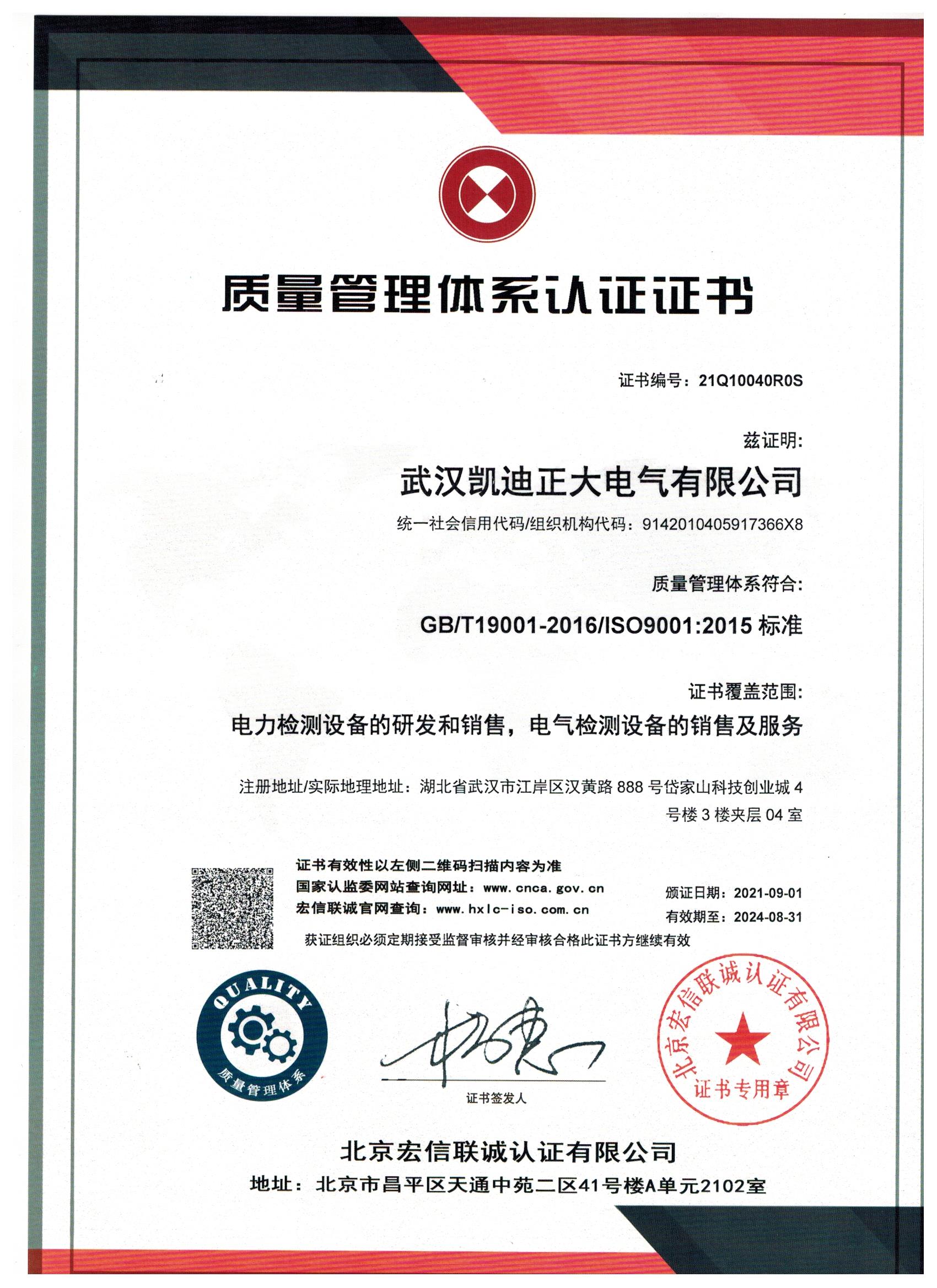 凱迪正大公司獲得QES三標體系是質量管理體系(ISO9001)、環(huán)境管理體系(ISO14001)、職業(yè)安全健康(ISO45001)這三個體系整合的簡稱。本次質量認證外審工作由中國質量認證中心負責,QES三體系認證有助于凱迪正大不斷提高公司質量管理,增強顧客滿意度,同時可以通過建立文件化的管理體系,促進凱迪正大持續(xù)改進,隨著經(jīng)濟全球化趨勢日益明顯,越來越多的企業(yè)將實施全球化經(jīng)濟戰(zhàn)略,凱迪正大也是如此,我司將根據(jù)審核組的意見和建議,加大管理體系標準、文件的學習力度,確保全員參與管理體系的貫標工作;進一步加強日常監(jiān)督和指導,對個別不合格項立即整改,持續(xù)改進、完善QES管理體系,切實提高運行質量,對客戶負責,服務公司高質量發(fā)展。