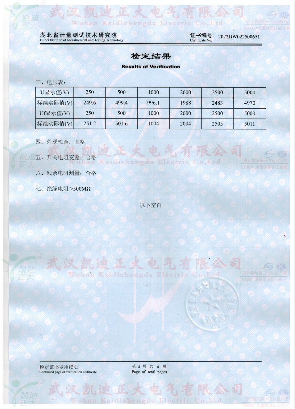 參照JJG1072-2011《直流高壓高值電阻器》檢定要求,ZX119-10絕緣電阻表檢定裝置(兆歐表檢定裝置)獲得證書2022DW022500651檢定證書,高阻箱符合檢定規(guī)程。