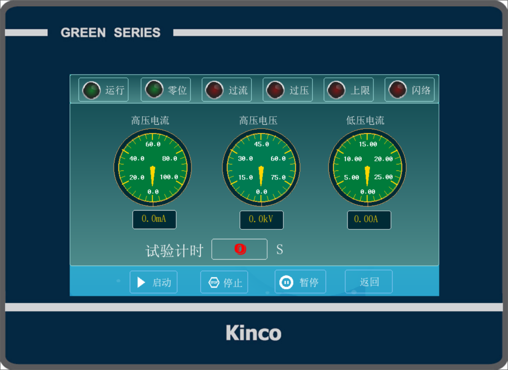 試驗狀態(tài):高壓擊穿設(shè)備安全說明,軟件里實時顯示當(dāng)前試驗狀態(tài),如:試驗門是否關(guān)閉,升壓指示、歸零復(fù)位指示等。