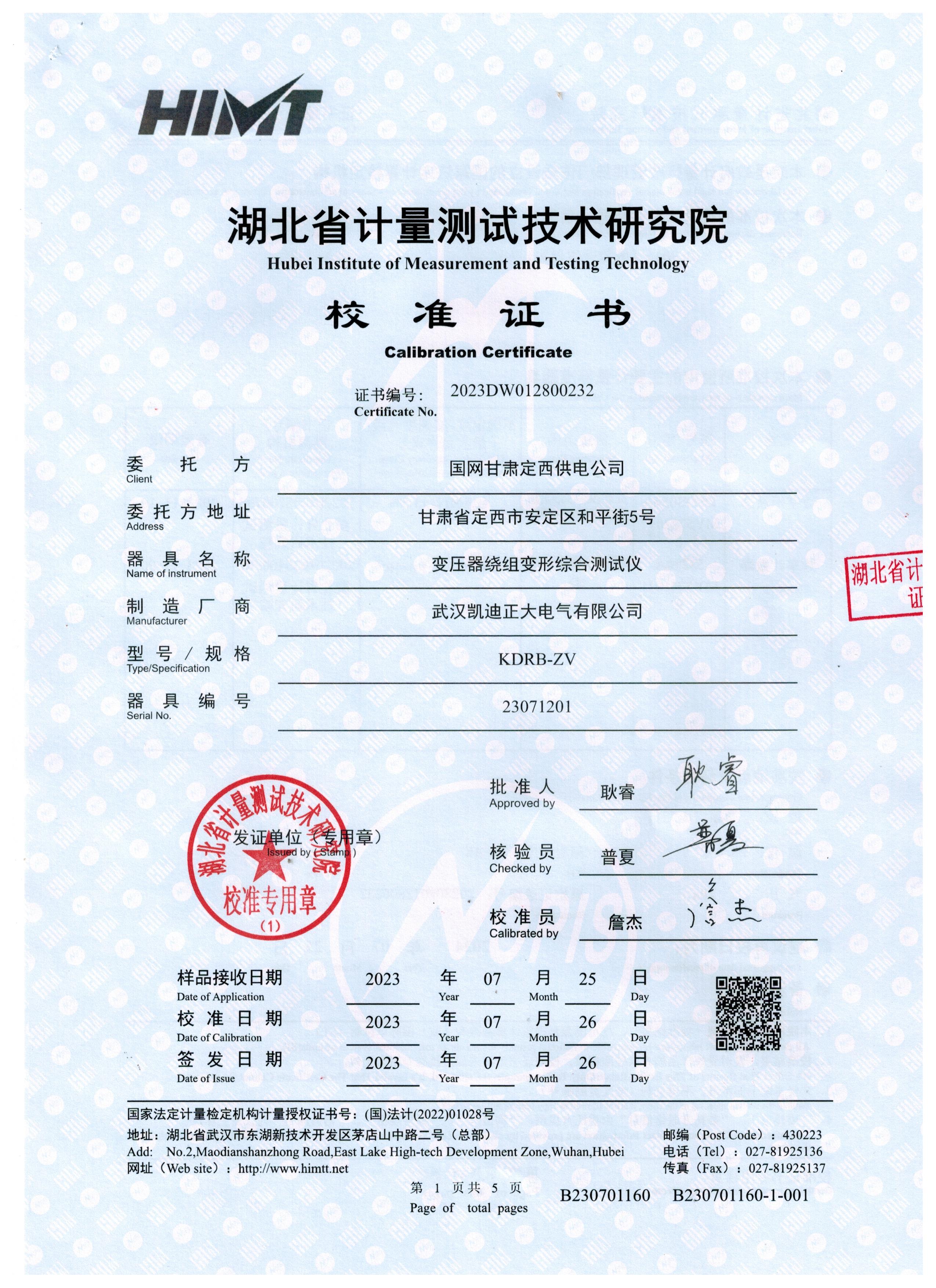 變壓器繞組變形綜合測試儀獲得電氣設(shè)備質(zhì)量檢驗測試中心報告