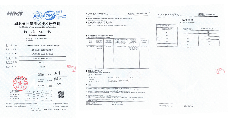 近日從湖北省計(jì)量測(cè)試技術(shù)研究院傳來喜訊,三峽金沙江川云水電開發(fā)有限公司位于云南省永善縣的溪洛渡電廠,所購(gòu)置的我司KDJS-8A全自動(dòng)絕緣靴手套耐壓試驗(yàn)裝置,已成功通過該研究院的檢測(cè)與校準(zhǔn)。