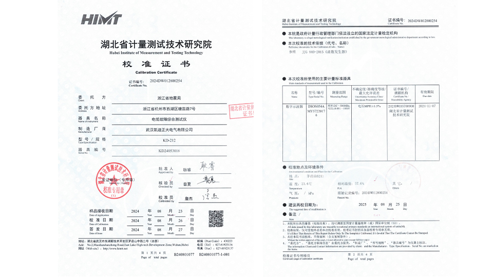 KD212電纜故障綜合測試儀嚴(yán)格遵循了JJG 840-2015《函數(shù)發(fā)生器》等相關(guān)校準(zhǔn)標(biāo)準(zhǔn),確保了測量結(jié)果的準(zhǔn)確性和可靠性。在頻率測量方面,該測試儀覆蓋了從直流(DC)到500MHz的寬廣范圍,充分滿足了現(xiàn)代通信和電力系統(tǒng)中對高頻信號測試的需求。同時在電壓測量上,KD212也展現(xiàn)出了精度和穩(wěn)定性和優(yōu)勢,測量范圍可達(dá)(0.001~100)V,確保了在不同電壓等級下的電纜故障檢測都能得到準(zhǔn)確無誤的結(jié)果。