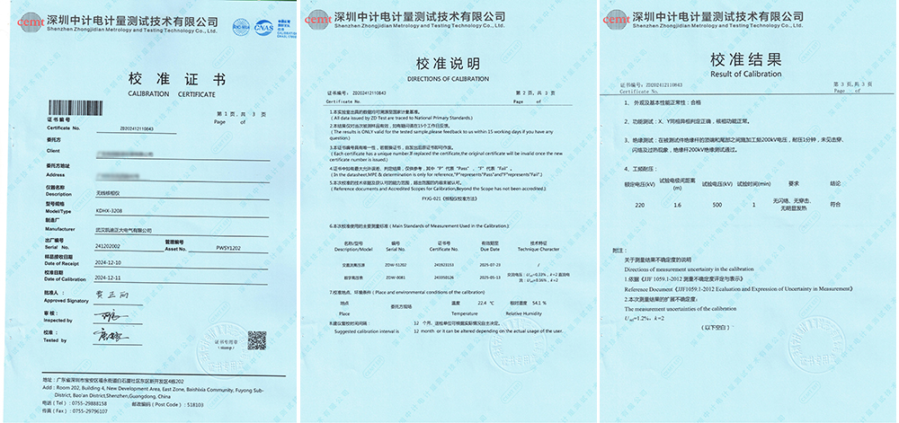 近日,廣東某能源發(fā)展有限公司訂購(gòu)我司的KDHX-3208無(wú)線核相儀順利通過(guò)了深圳中電計(jì)量測(cè)試技術(shù)有限公司的專業(yè)校準(zhǔn),獲得校準(zhǔn)證書(shū)。