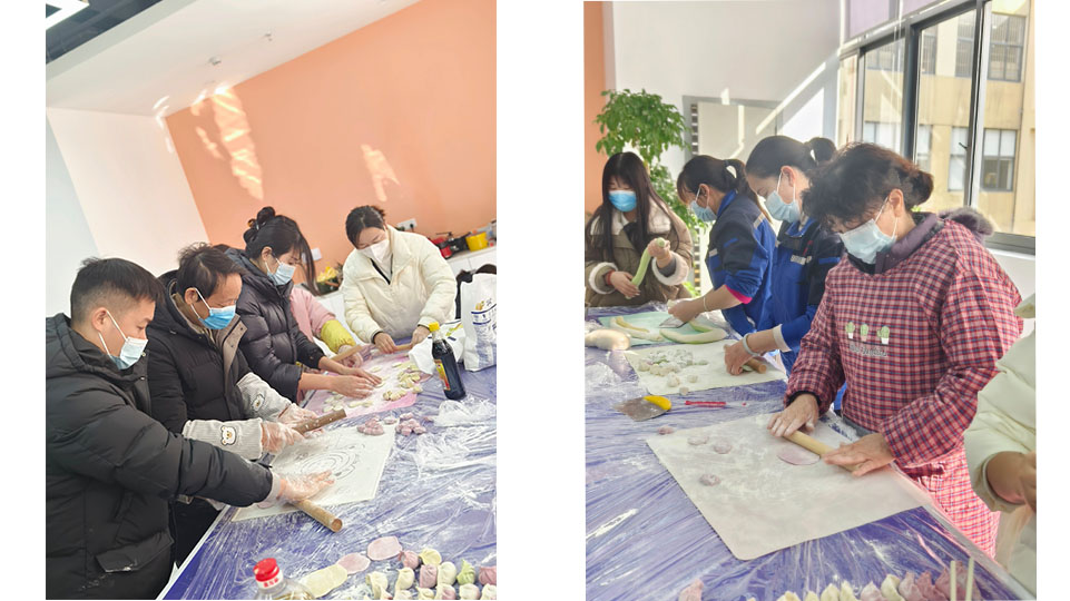在團隊的精心組織下,大家分工明確,各司其職,卻又默契十足。有的員工手法嫻熟地揉面、搟皮,那一張張薄如蟬翼、圓如玉盤的面皮,在他們的指尖跳躍,仿佛是冬日里靈動的藝術(shù)品;有的則專注地調(diào)配餡料,將新鮮的蔬菜與精選的肉末巧妙融合,每一口都是對味蕾的誘惑;還有的員工則是包餃子的高手,他們靈巧地將餡料置于面皮之上,輕輕一捏一合,一個個形態(tài)各異、憨態(tài)可掬的餃子便躍然桌上,有的宛如小船,有的似元寶,還有的帶著幾分俏皮的褶皺,仿佛在訴說著各自的故事。