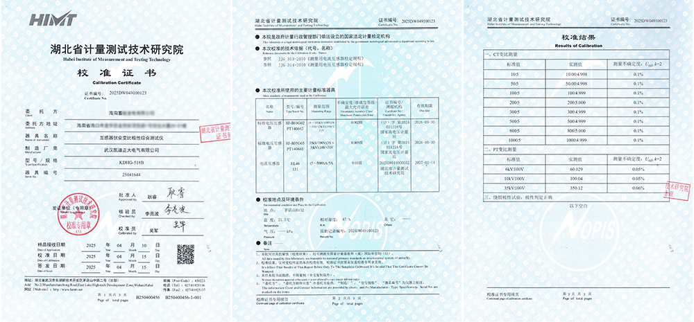 兩套設(shè)備均通過(guò)精度、重復(fù)性及穩(wěn)定性測(cè)試,同步獲得校準(zhǔn)證書(證書編號(hào):2025DW049100124;2025DW049100123)。此次雙機(jī)全項(xiàng)達(dá)標(biāo)不僅印證了武漢凱迪正大產(chǎn)品的可靠品質(zhì),更彰顯了海南客戶在電力檢測(cè)裝備選型中的精準(zhǔn)判斷,為深化長(zhǎng)期合作奠定了堅(jiān)實(shí)互信基礎(chǔ)。