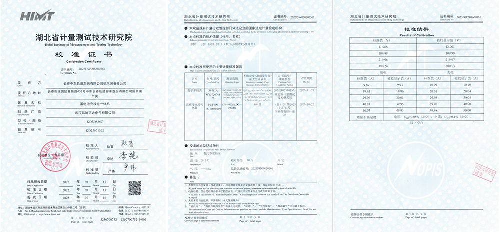 2025年7月16日,湖北省計(jì)量測(cè)試技術(shù)研究院正式簽發(fā)了編號(hào)為2025DW008600361的校準(zhǔn)證書,完成了對(duì)武漢凱迪正大電氣有限公司研制生產(chǎn)的KDZD886C蓄電池充放電一體機(jī)的計(jì)量校準(zhǔn)工作。